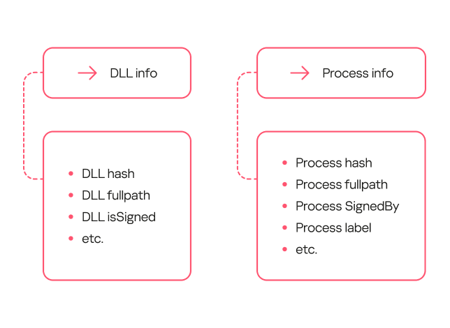 So, we had a labeled sample with a large number of library loading events from various processes. How can we describe a “clean” library? Using a process name + library name combination does not account for renamed processes. Besides, a legitimate user, not just an attacker, can rename a process. If we used the process hash instead of the name, we would solve the renaming problem, but then every version of the same library would be treated as a separate library. We ultimately settled on using a library name + process signature combination. While this approach considers all identically named libraries from a single vendor as one, it generally produces a more or less realistic picture.