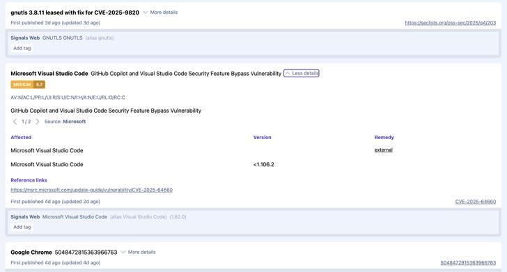 - Extended data for each vulnerability, including its source e.g. Mitre, Microsoft.