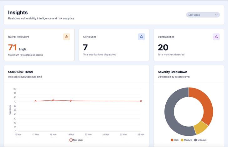 Below your Feed is Insights, which displays real-time vulnerability intelligence and risk analytics specific to your software. It highlights such things as key trends, risk patterns, and emerging threats across your software.