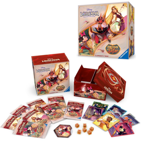 Amazon’s deal on Reign of Jafar Illumineer’s Trove is worth it for the Booster Packs alone. Inside the box, you’ll find eight packs with 12 cards each. At $33, you’re paying just over $4 per pack, which is quite the bargain. When you throw in the nice card storage box, dice, and lore counter, it’s easy to see why this deal is over 50% claimed. Here’s the full list of contents: